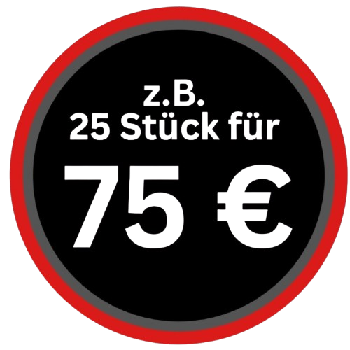 Druck: 25 Stk. = 75 €, 50 Stk. = 125 €, 100 Stk = 150€